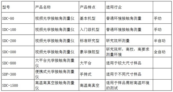 晟鼎接觸角測量儀型號大全: